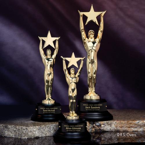 The R.S. Owens original gold plated cast metal Star Achievement award is presented on an ebony finished wood base with a laser engraved black brass plate. ©RS Owens & Co.