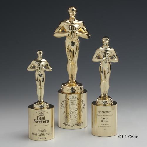 The Classic Achievement is a timeless award filled with touches of fine craftsmanship. From the exquisite detailing to the variety of base styles the Achievement series is the exceptional choice for an extraordinary victory. The featured base is gold plated turned aluminum with a deep etched and oxidized imprint. These figures should not be sold as an "OSCAR©" Oscar© look-alike or in any manner suggesting an affiliation with the Academy Awards. ©RS Owens & Co.