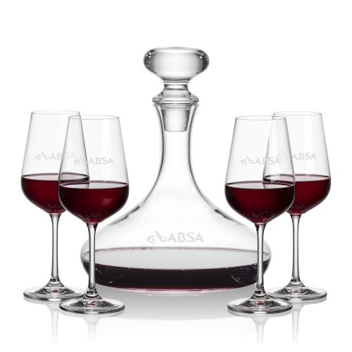 Handsome curved design perfect for decanting wine complete with an complementing stopper. This set comes with our Laurent 12oz Stemmed Wine Glass, perfect for either a full-bodied Cabernet or a light bodied Riesling. Lead Free Crystalline. Available in 2 or 4 wine glasses set.