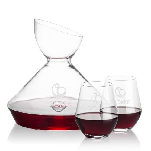 Rest assured, the Woodbury Carafe and wine glasses set will make a statement of elegance changing the ambiance from the simplest affair to an upscale event. The highlight of this set is its carafe with punt and funnel-shaped opening that allows for controlled and gentle pouring of the wine into the carafe. The carafe is paired with your choice of 2 or 4 stemless wine glasses. Other wine glass styles available.