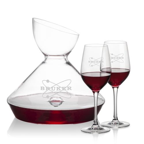 Rest assured, the Woodbury Carafe and wine glasses set will make a statement of elegance changing the ambiance from the simplest affair to an upscale event. The highlight of this set is its carafe with punt and funnel-shaped opening that allows for controlled and gentle pouring of the wine into the carafe. The carafe is paired with your choice of 2 or 4 wine glasses. Other wine glass styles available.
