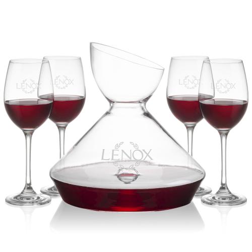 Rest assured, the Woodbury Carafe and wine glasses set will make a statement of elegance changing the ambiance from the simplest affair to an upscale event. The highlight of this set is its carafe with punt and funnel-shaped opening that allows for controlled and gentle pouring of the wine into the carafe. The carafe is paired with your choice of 2 or 4 wine glasses. Other wine glass styles available.