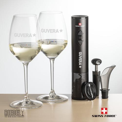 This ultimate duo includes the RIEDEL Extreme Wine, perfect for your favorite vintage, and The Swiss Force Wine Opener, which features a battery-operated automatic opener, foil cutter, pourer, and stopper. Packaged in a satin-lined presentation gift box for an elegant gift set for any occasion.