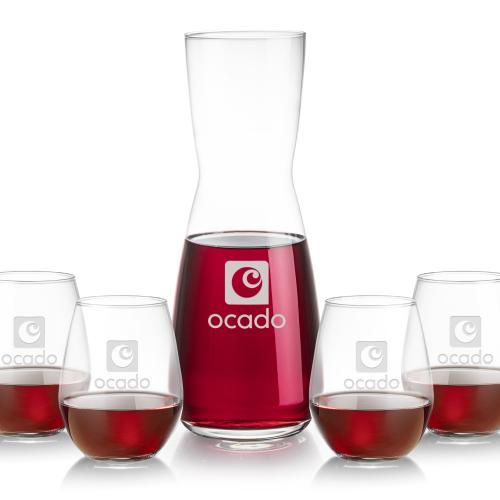 The Mason Carafe & Wine Glass Set pairs the elegant Mason Wine Carafe with two complementing stemless wine glasses, creating a refined presentation for any occasion. The carafe's sleek curves and the glasses' timeless design make this set ideal for sharing and savoring fine wines. Available with a variety of different wine glass styles.