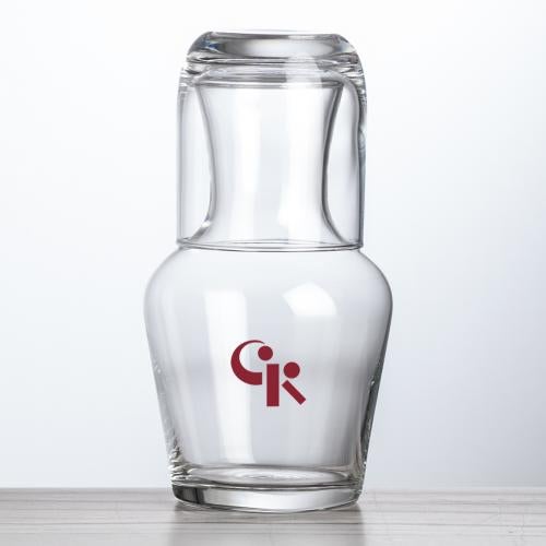 The Summit water set creates an elegant desk accessory that will become an essential part of your day's routine, The glass nestles on top of the carafe to create a spill proof lid as well as a stylish drinking vessel. This carafe set will enhance any nightstand as well as a desk.