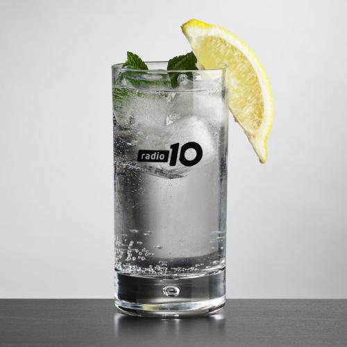The Bastia 12.75oz highball glass features a thick sham base with an elegant single air bubble centered and embedded in the glass. The tall, narrow design makes this the perfect glass to enjoy a refreshing cocktail or mixed drink.