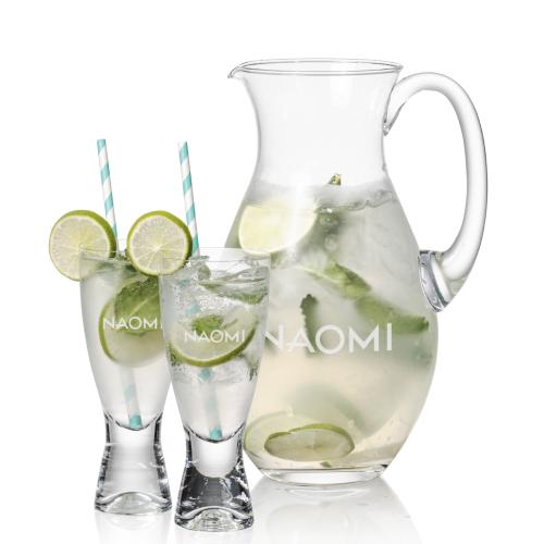 The Lead-Free Crystalline Charleston Pitcher embodies a classic pitcher shape to make pouring a breeze. This set includes 2 or 4 Bastien Cocktail glasses and ships in a satin-lined presentation gift box. An excellent gift idea for serving your favorite refreshing drinks or cocktails.