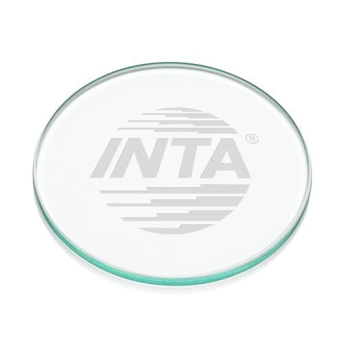 A single flat, round 5/16" jade glass coaster, approximately 4" in diameter. Includes etching on the underside.