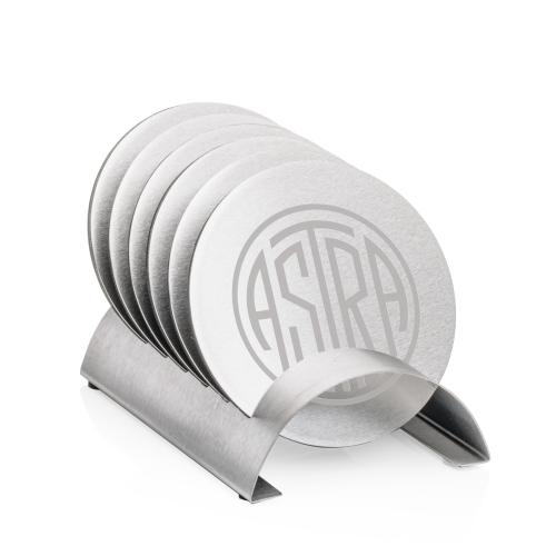Elevate your surroundings, protect your furniture, and embrace a lifestyle of elegance with the stainless steel Denver coaster set! Designed for both style and practicality, this sleek set of 6 coasters comes with a matching stand to keep the coasters neat and organized. Each coaster includes a rubber backing to prevent scratches. Individual coaster is also available!