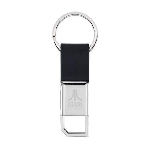 Valense Metal Keychain features a chrome finish with a leatherette strap and keyring. The bottom hook of the keychain pulls out to easily add on your keys or keychains and locks back into place.