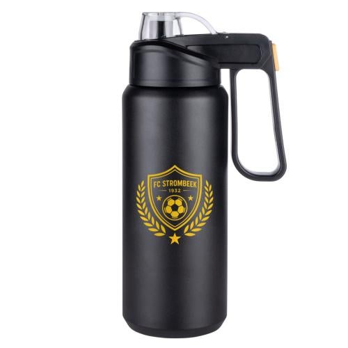 The Ankaa Sports Bottle combines durability and convenience with its double-wall, powder-coated stainless steel construction that keeps drinks cold for hours. A built-in silicone straw with a protective cover opens easily with a push button on the large, ergonomic handle-perfect for on-the-go hydration. Sleek, rugged, and functional, it's designed for everyday use, from the gym to the office to outdoor adventures.