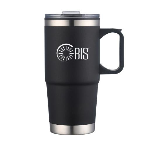 The 24oz Lilium Double Wall Travel Mug boasts a durable powder-coated body for a sleek and stylish finish. It features a sliding closure on the lid and a carrying handle with a thumb indent, offering a comfortable grip. Designed with a BPA-free thermoplastic liner, this mug keeps your favorite hot or cold beverages just the way you like them.