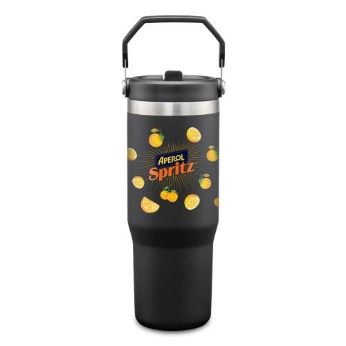 The Revive SS Tumbler w/Handle & Straw has a capacity of 30 ounces and includes a straw spout for sipping and a convenient carrying handle. Crafted from vacuum-insulated stainless steel, this travel mug is designed with a lower portion that easily fits into standard cup holders for added practicality. Keeps your drink cold for 12 hours and warm for 8 hours.