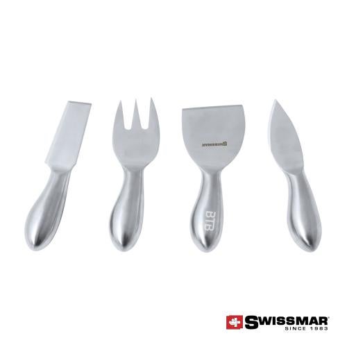 The set includes: Cheese Cleaver, Hard Cheese Knife, Parmesan Cheese Knife, and Cheese Fork