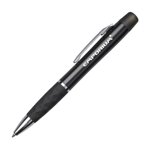 The Franz is a sturdy twist action ballpoint pen with a tri-color highlighter (Yellow, Blue, Pink) and textured rubber comfort grip for an easy and smooth writing experience.