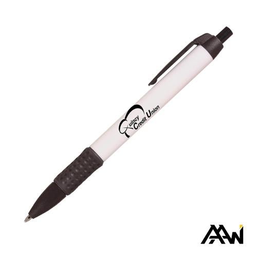 This Jumbo Retractable Grip Pen features a smooth gloss white barrel paired with a matte-colored trim for a clean and modern appearance. Its wide body and textured rubber grip provide superior comfort and control during extended writing. Available in a variety of bold trim colors, this pen is perfect for everyday use or customized branding to make your logo stand out. Extra charge for the optional clip imprint.